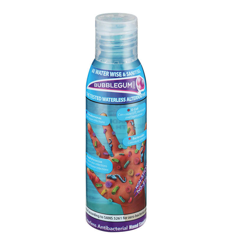 Our waterless gel is an anti-microbial hand lotion, tested to SANS 5261 for efficacy, killing bacteria in less than a minute.